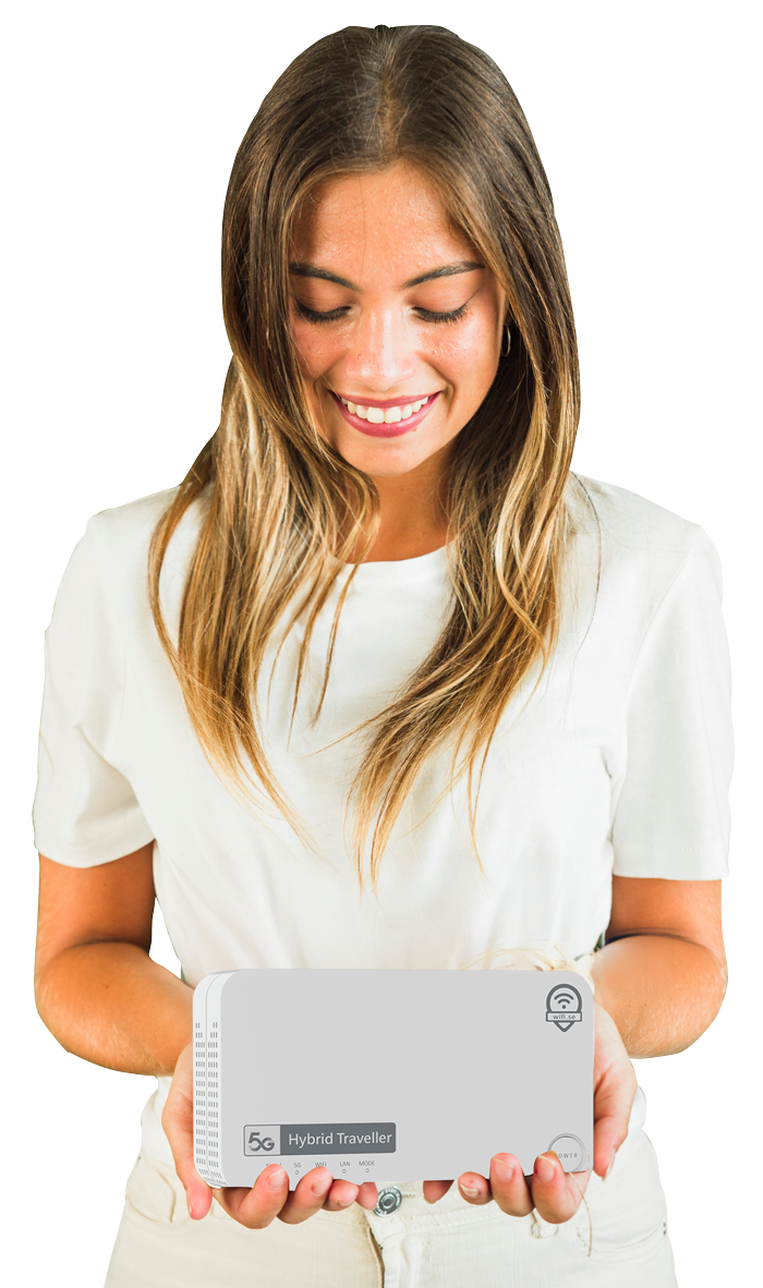 Cuando viajas en autocaravana por Suecia y Europa, una conexión a internet estable no solo es cómoda: es casi imprescindible. Después de un día lleno de aventuras, es agradable poder relajarse viendo una película, una serie o manteniendo el contacto con familiares y amigos. Por eso, nuestro router portátil 5G de desarrollo propio – Hybrid Traveller – es la solución perfecta.