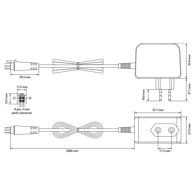 230 Volt power cable for Teltonika with 1.5 meter cable. EU power supply with 4-pin connector.