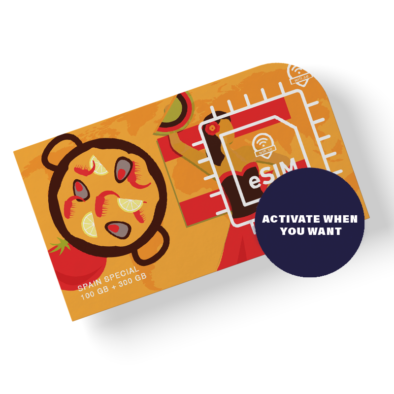 Roaming eSIM Spain Special: 100 GB roaming plus 300 GB in Spain, or 400 GB in Spain. Full-speed 5G, no daily limits, activate whenever you want.